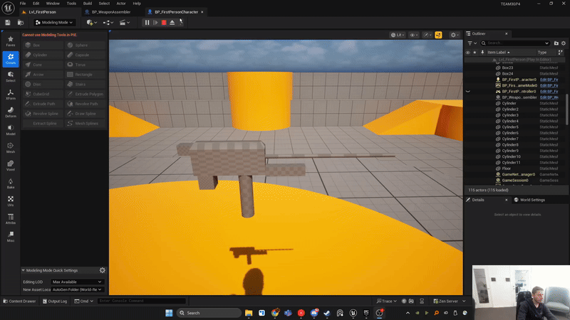 - Prototype Top-Down: I prototyped a data-driven modular weapon system (inspired by Borderlands) that could randomly combine parts like barrels, stocks, and magazines to create unique weapons.